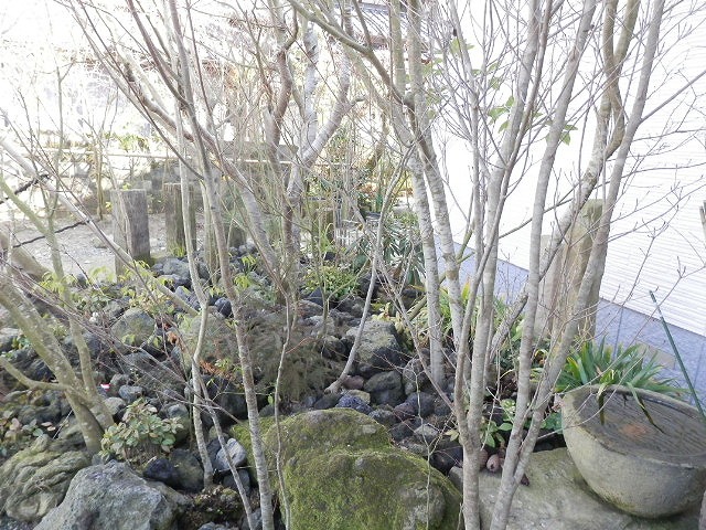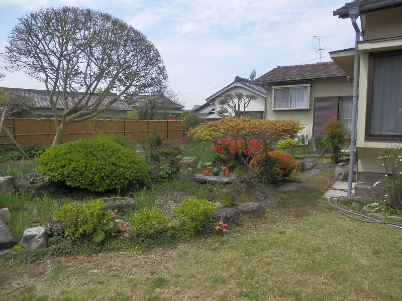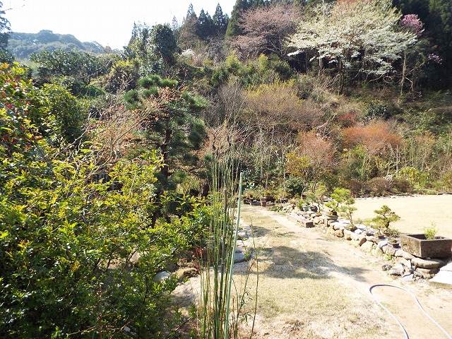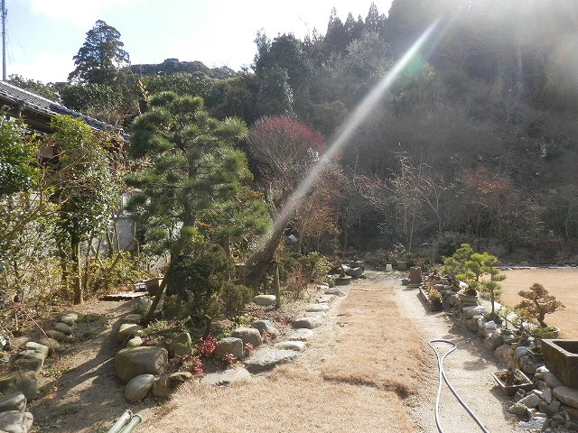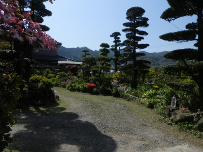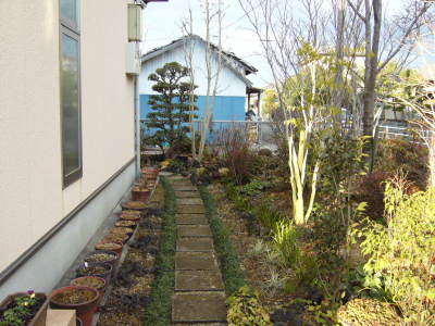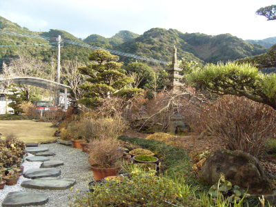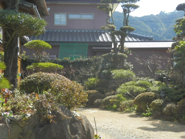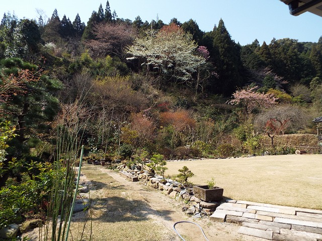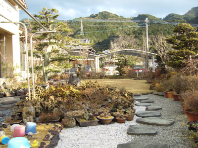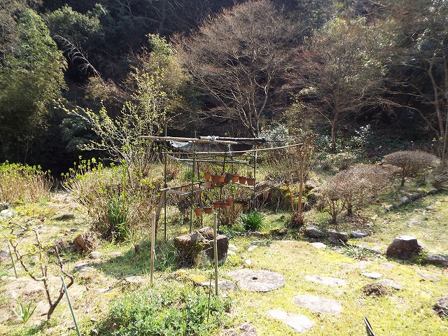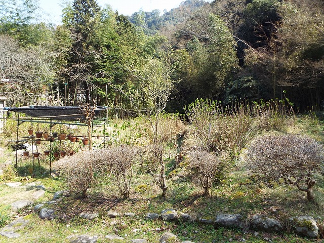 流藻川の真横に家には庭よりも畑が広い。しかし杏、ザクロ、姫リンゴをはじめとする庭木や主の庭木に対する趣向には頭が下がる。 |