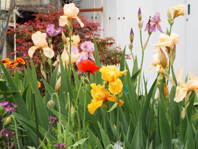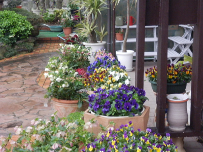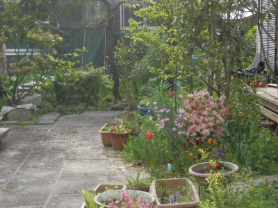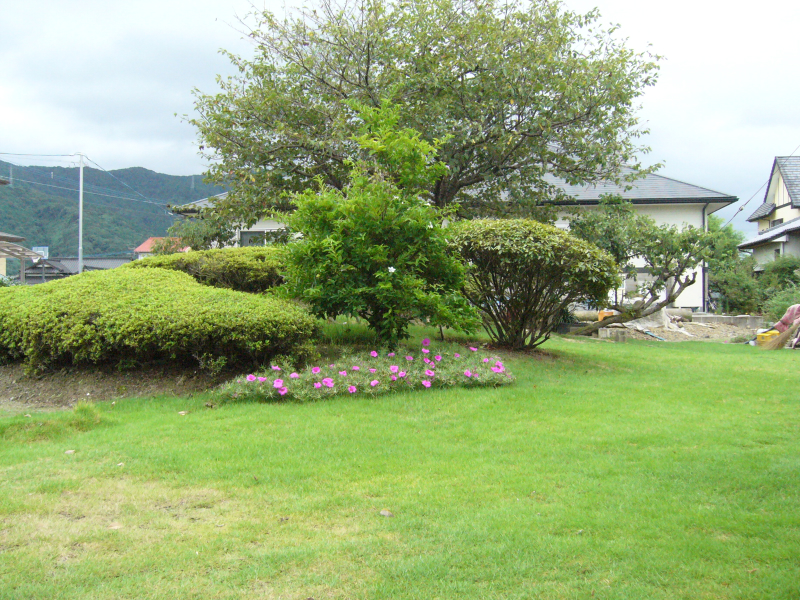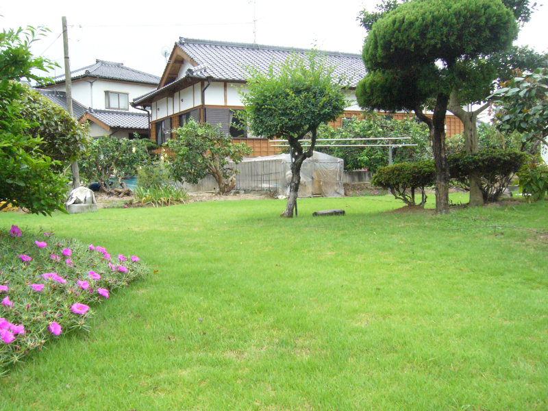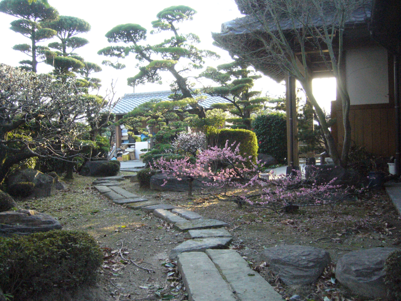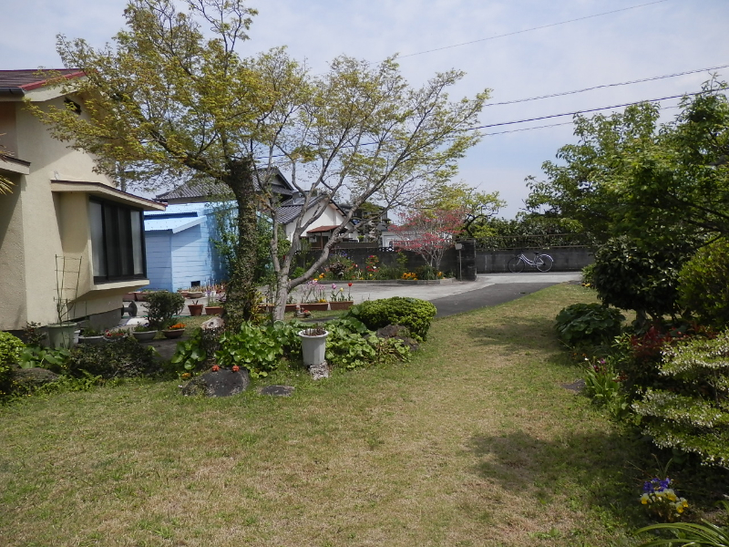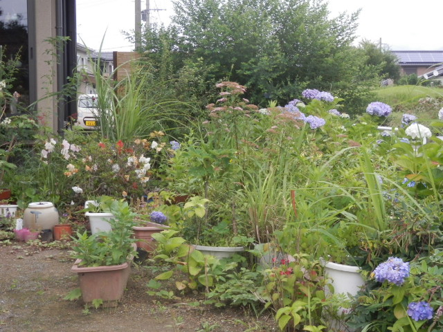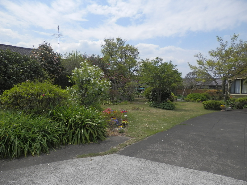 流藻川の真横に家には庭よりも畑が広い。しかし杏、ザクロ、姫リンゴをはじめとする庭木や主の庭木に対する趣向には頭が下がる。 |