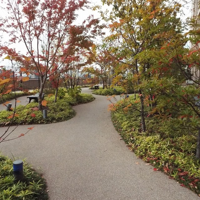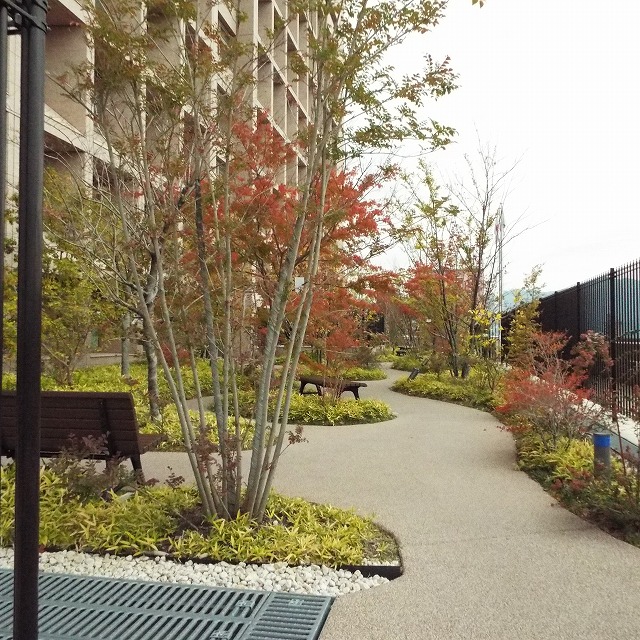 何か所か設けられていました。木は落葉樹が多く、ドウダンツツジ等が色づき始めていました。